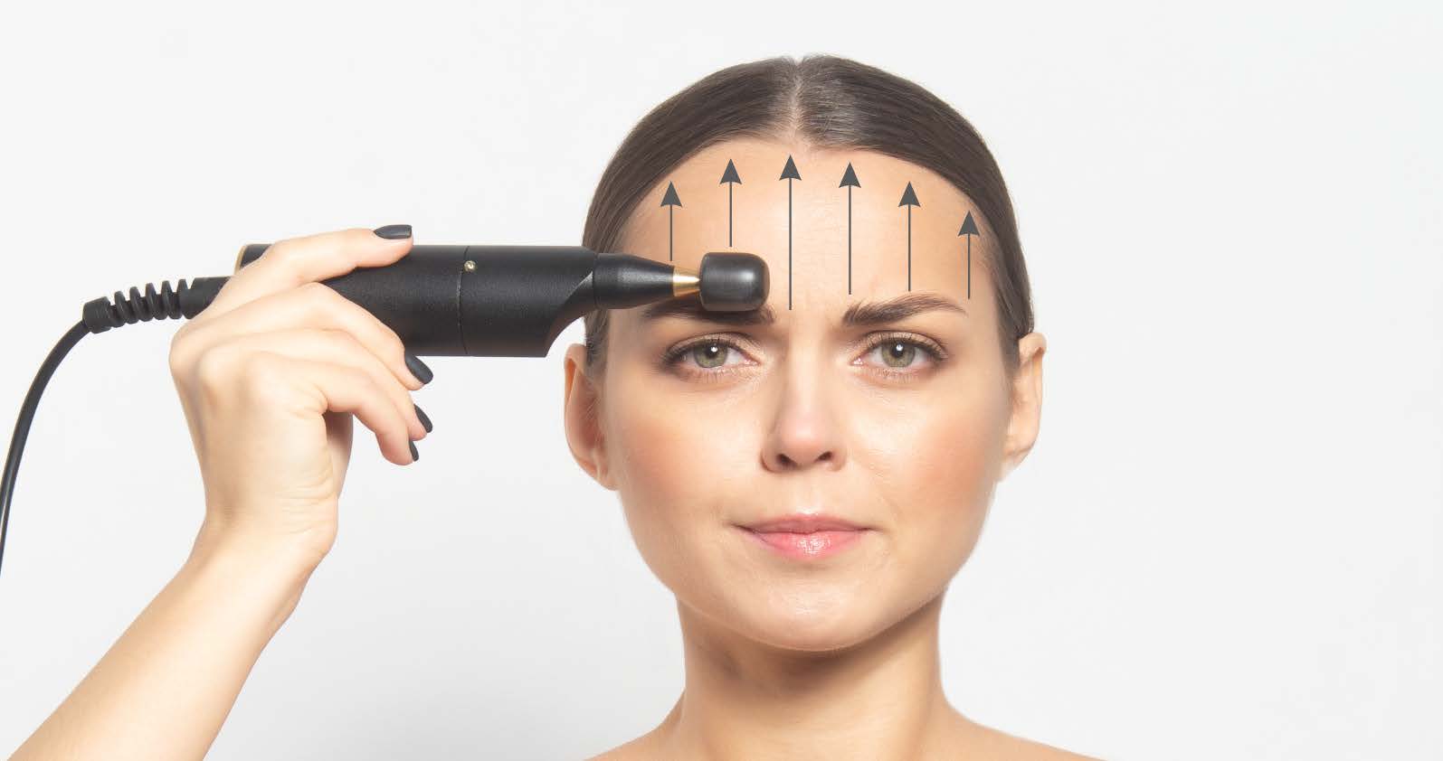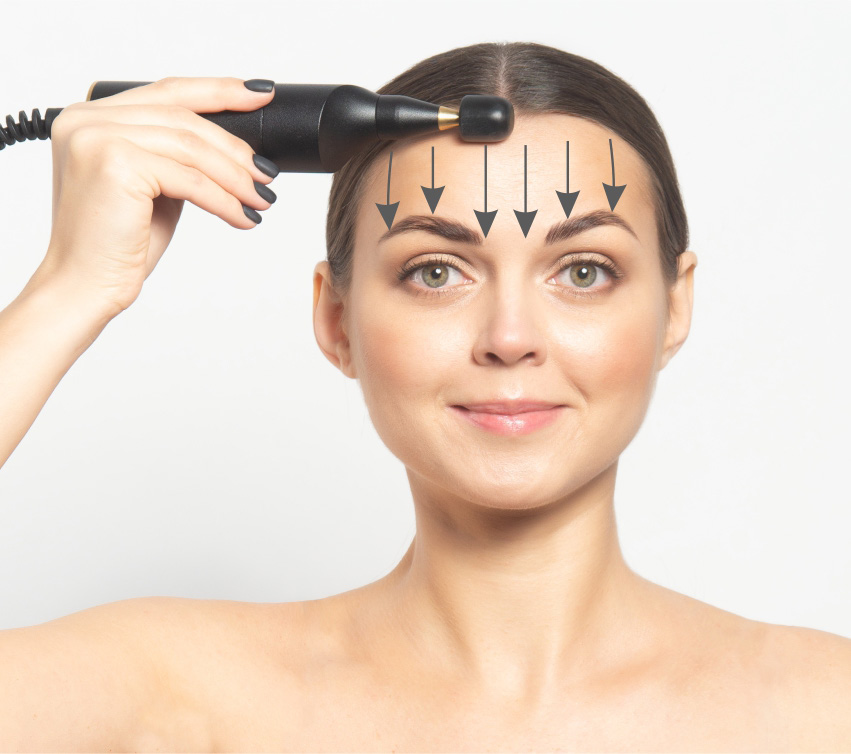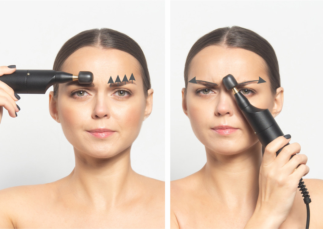 Часть 1. Наморщить лоб: на лбу появятся глубокие поперечные складки. Приложим валик стимулятора у края волосяного покрова головы и затем, слегка нажимая им на кожу (чтобы не травмировать последнюю), ведем валик вниз, как бы расправляя эти морщины. И так по всем участкам лба (источник «Явь и надежды» В.Т.Назаров, стр. 70).